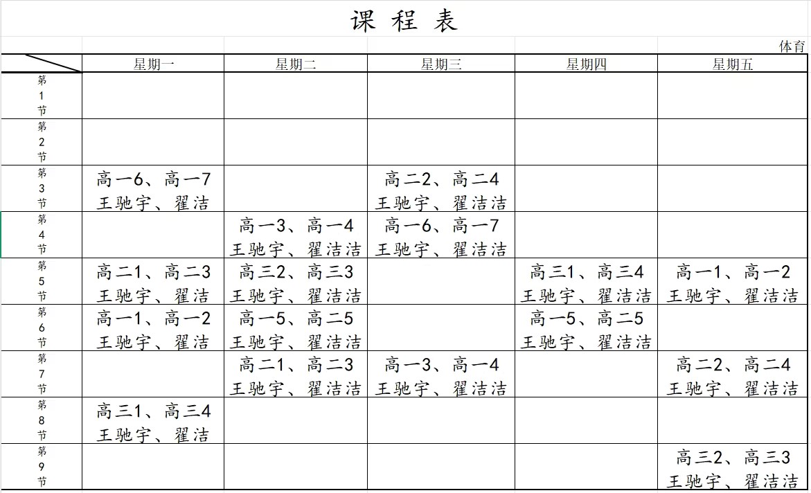 康桥培英高级中学2025-2026学年度体育课表:链接